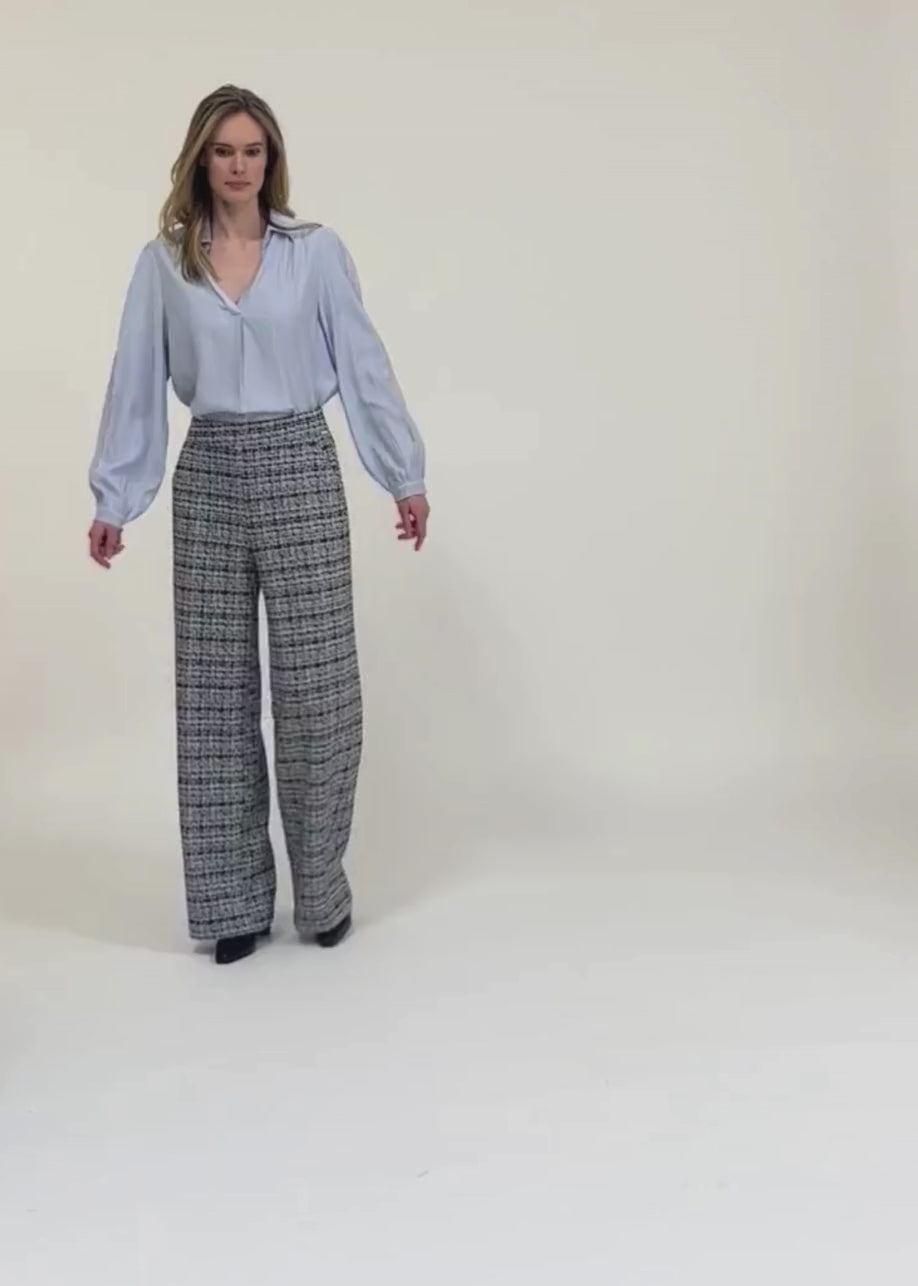 Comfort and style come together in these wide-leg trousers made from soft bouclé jersey. The elastic waistband ensures a comfortable fit, while the rich texture of the fabric adds a refined touch. Perfect to pair with a simple top or a matching blazer for a fashionable look.